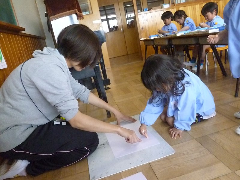 年少組のお友達は大きな画用紙で大きな顔を描くのが初めてなので一人ずつ描きました 楽しみですね♪