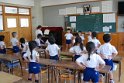 7.15 終業日 家庭へのたよりは担任が一人一人スキンシップをとりながら手渡ししました。